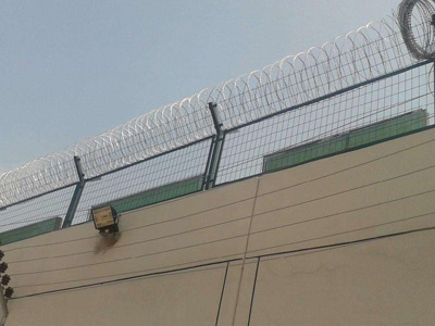監獄護欄網又叫監獄防護網、監獄圍網,多采用Y形柱刀片刺網,具有良好的震懾、防翻越,材質堅硬,高張力,不宜觸摸,因而能達到防護隔離。