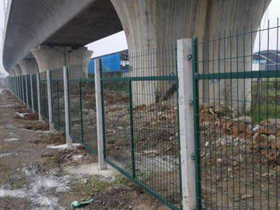 7、隔離柵欄在地形起伏的地段設(shè)置時,可將地面整修成一定的縱坡,采用將金屬網(wǎng)制成一定角度的平行四邊形順坡設(shè)置,也可以調(diào)整立柱高速和連接件位置,將隔離柵欄做成階梯狀。